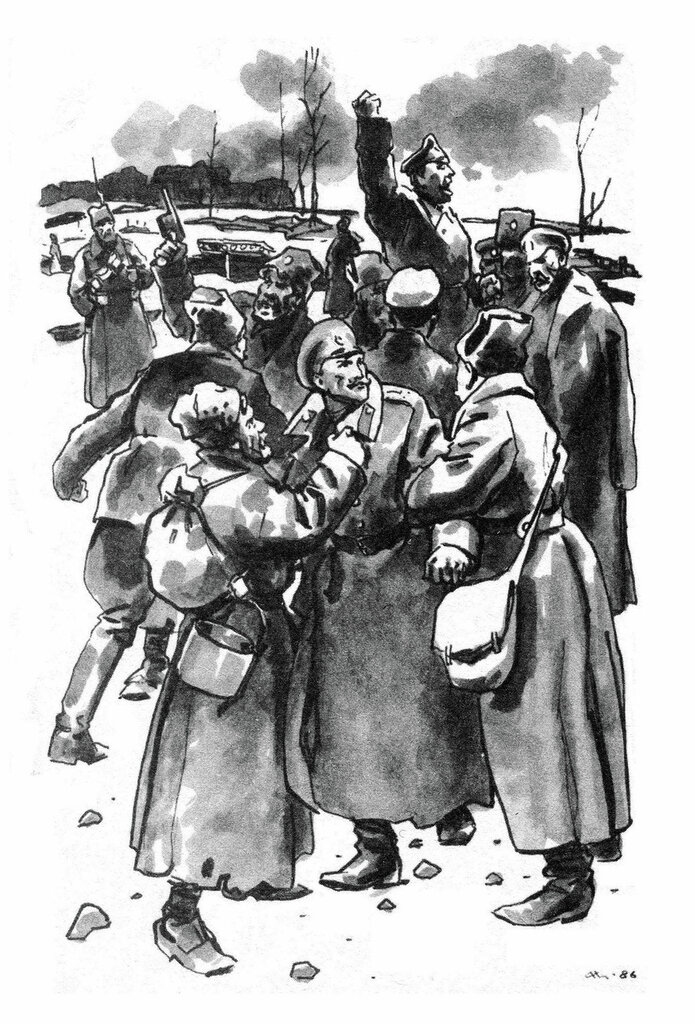 – Товарищи и граждане! Десять тысяч солдат Турецкого фронта избрали меня на почетный пост члена армейского комитета… Товарищи и граждане! Преступный и позорный Брестский мир толкает свободную родину в пучину гибели. Россия – это пароход, потерпевший в море крушение. Мы должны спасти гибнущую страну и самих себя. Довольно розни и вражды. Большевики хотят стравить вас с такими же русскими, как и вы сами. Позор и еще раз позор! Народу нужна не война, а образование и разумные социальные реформы. Товарищи и граждане…