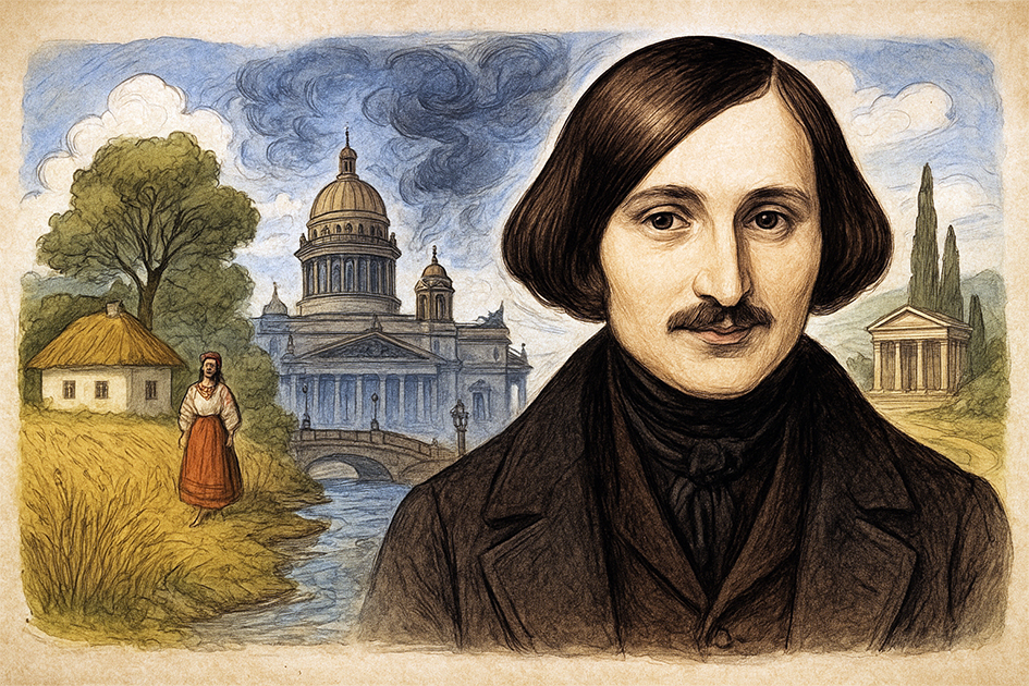 Кем точно не был Николай Васильевич, так это мистиком, с печатью мировой скорби на лице выглядывающим из-за воротника обязательной шинели. Он был отличным мистификатором. При том далеко не бескорыстным. Представьте 19-летнего амбициозного выпускника Нежинской гимназии, приехавшего «покорять столицу» и быстро понявшим, что стартовав с чина коллежского регистратора (последний XIV класс), который он имел, маршальский жезл придётся выбросить из ранца. А надежды-то были какие: «Во сне и на яву мне грезится Петербург, с ним вместе и служба государству». Это из письма матери. А в письме другу Данилевскому (с которым вместе прибыл в столицу и поселился в доме Трута у Кокушкина моста): «Думаю, нами обеими не слишком довольны дома – мною, что вместо министра сделался учителем; тобою, что из фельдмаршалов попал в юнкера». Чиновничью карьеру бросил быстро. Полученной по протекции преподавательской стезёй тоже пренебрёг. Выбирает литературную карьеру. Заметьте, провинциал, автор нескольких заметок в журнале (и неудачной поэмы из средневековой жизни, тираж которой сам уничтожил) всего лишь за год становится вхож в круг столичной литературной элиты: приятельствует с Жуковским, Плетнёвым, а с 1830 года «с Пушкиным на дружеской ноге» (!). В 1847 году он ностальгически пишет Жуковскому: «Что нас связало, неравных годами...» Лукавит. Сам-то прекрасно знал цену знакомствам и добивался их. В 1831 году выходят «Вечера...». Гоголь в Москве. И обрастает новыми друзьями: Аксаков, Щепкин, Погодин... По воспоминаниям, отличный рассказчик весёлых историй. Разночинец демократических настроений. Свой парень! Он пишет Погодину: «Чем знатнее, чем выше класс, тем он глупее. Это вечная истина!». По-видимому, так действительно считает и так относится к столичной бюрократической элите. Пишет же он в исповедальном «Воззвании к гению», вглядываясь в наступающий 1834 год: «Где означу я тебя великими трудами? Среди ли этой кучи набросанных один на другой домов, гремящих улиц, кипящей меркантильности <...> диких северных ночей? В моем ли прекрасном <...> Киеве <...> опоясанном моим южным, прекрасным, чудным небом, упоительными ночами». Ночь, характер её получает знаковое значение. Не только в литературе, но и в жизни писателя. Но попадает Гоголь на Украину только в 1835 году.