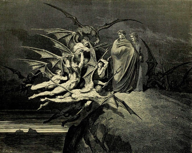 Иллюстрация Гюстава Доре к песни XXI «Ада». Издание 1900 годаThomas Fisher Rare Book Library / University of Toronto