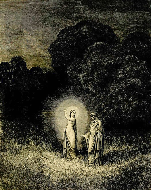 Во второй песни «Ада» Вергилий рассказывает, кто послал его на помощь Данте, погибавшему в сумрачном лесу. Оказывается, это были три прекрасные женщины: